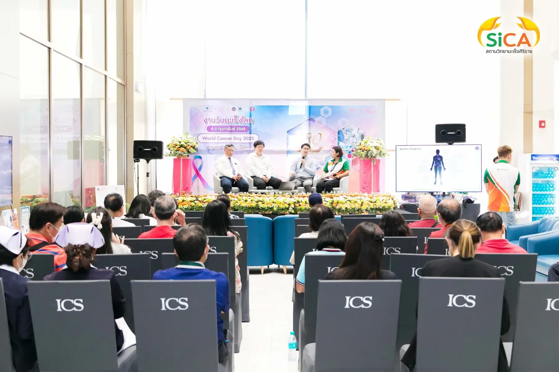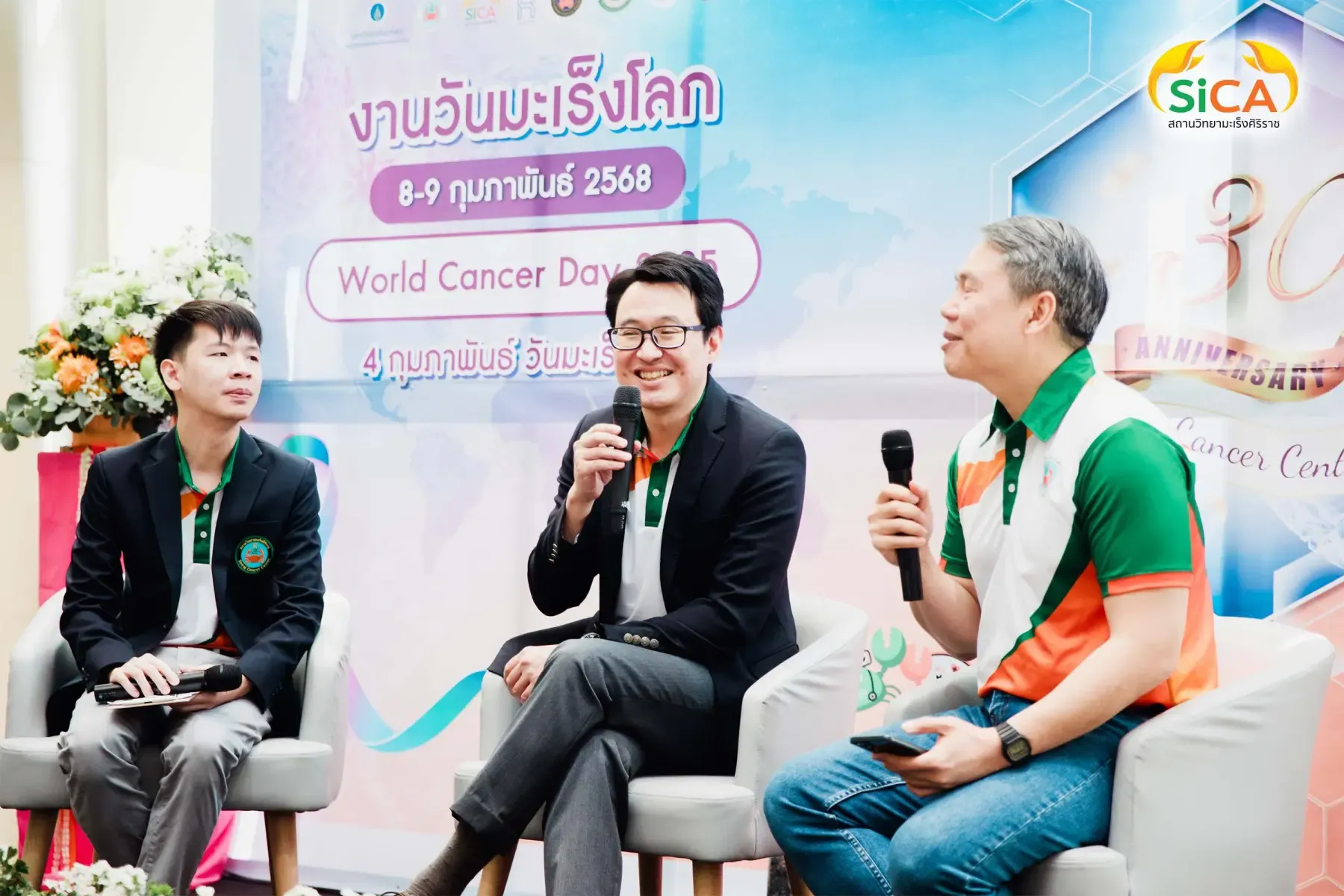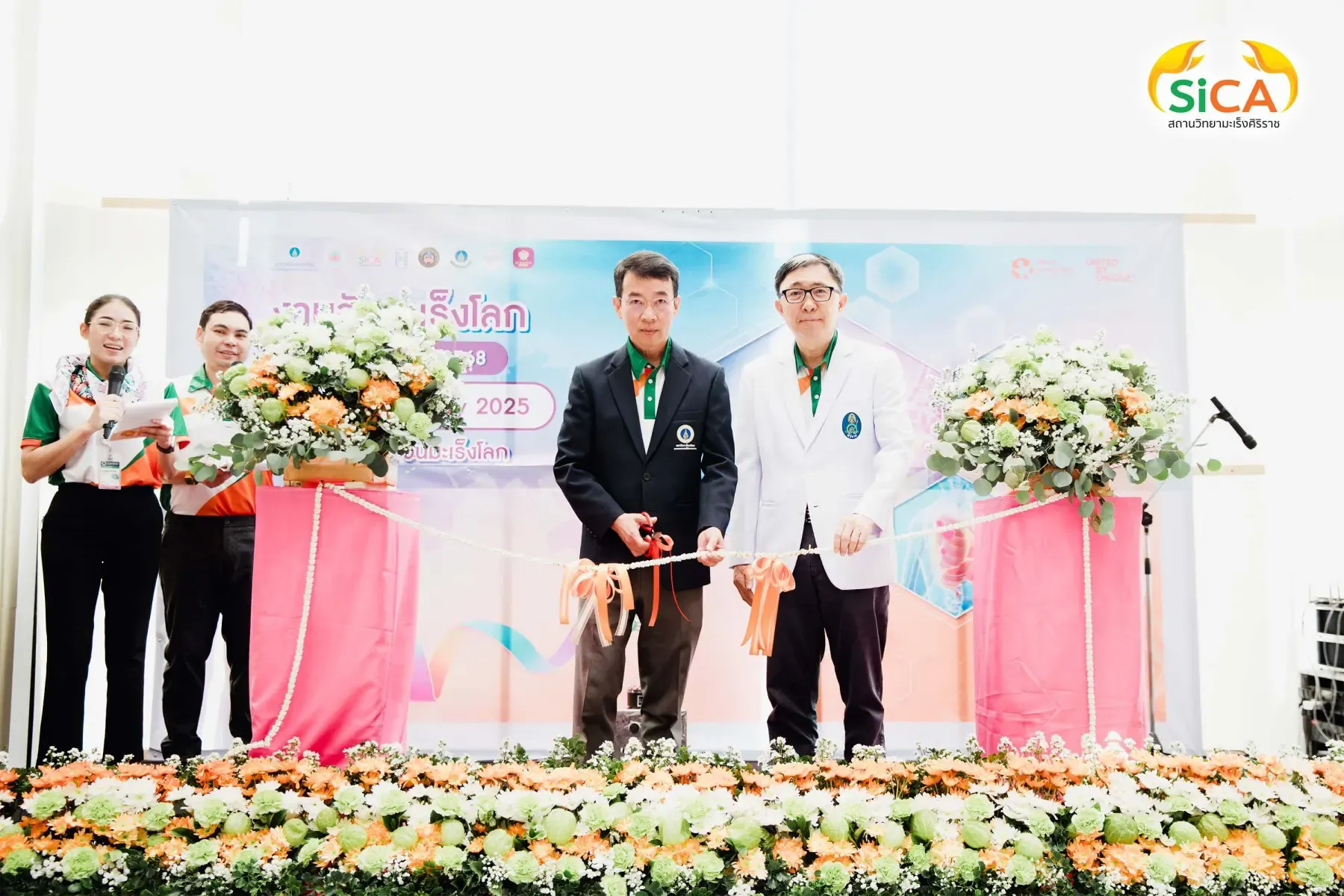 วันมะเร็งโลก ประจำปี 2568 จัดโดยสถานวิทยามะเร็งศิริราช คณะแพทยศาสตร์ศิริราชพยาบาล มหาวิทยาลัยมหิดล และ SIRIRAJ H SOLUTIONS ศูนย์สุขภาพเชิงป้องกันและบูรณาการสมดุลชีวิต และไอซีเอส ไลฟ์สไตล์ คอมเพล็กซ์ ระหว่างวันที่ 8-9 กุมภาพันธ์ 2568 โดยมี รศ. ดร.นพ.วิทูร ชินสว่างวัฒนกุล หัวหน้าสถานวิทยามะเร็งศิริราช (ขวามือ) เป็นผู้กล่าวรายงาน และมี ผศ. นพ.มนศักดิ์ ชูโชติรส รองผู้อำนวยการโรงพยาบาลศิริราช (ซ้ายมือ) เป็นประธานในพิธีเปิด ณ SIriraj H Solutions โดยภายในงานมีการเสวนาให้ความรู้เกี่ยวกับโรคมะเร็งโดยแพทย์ผู้เชี่ยวชาญ และบูธกิจกรรมต่างๆ