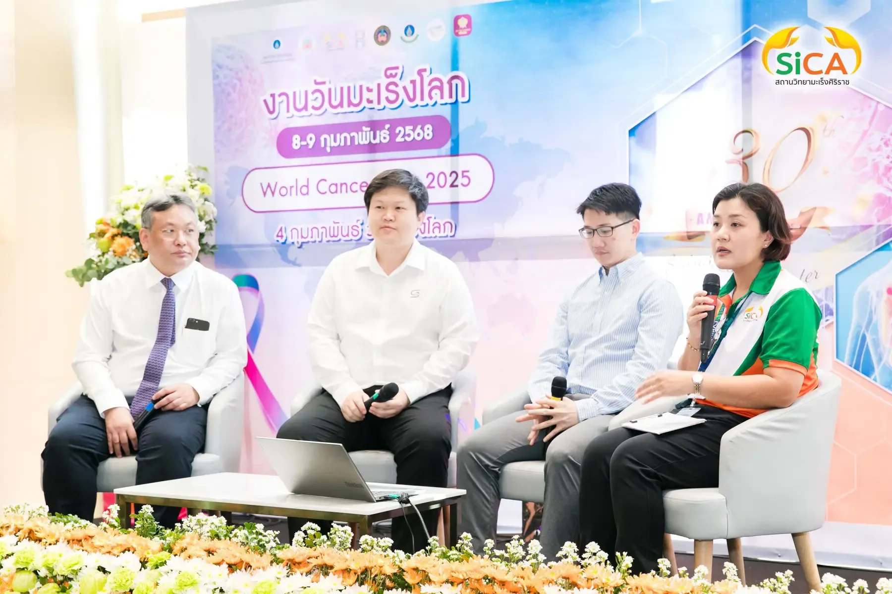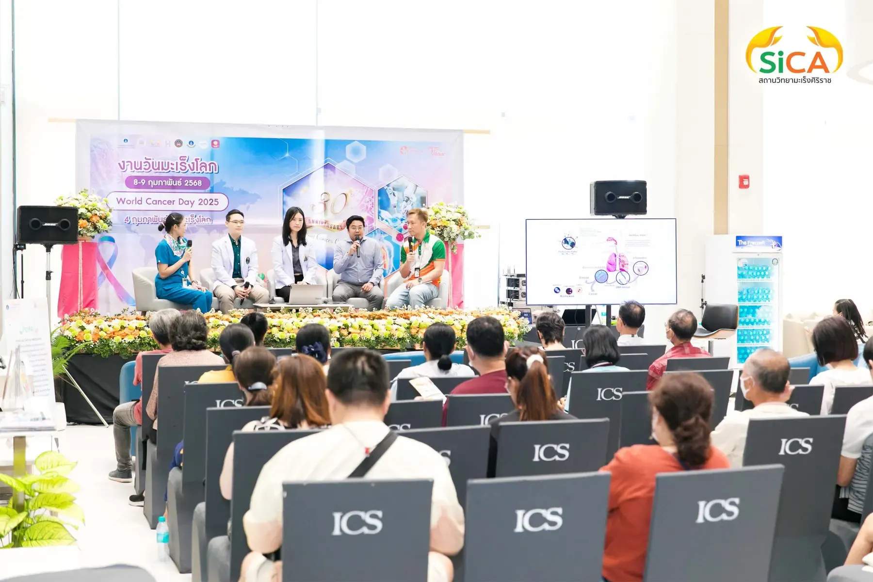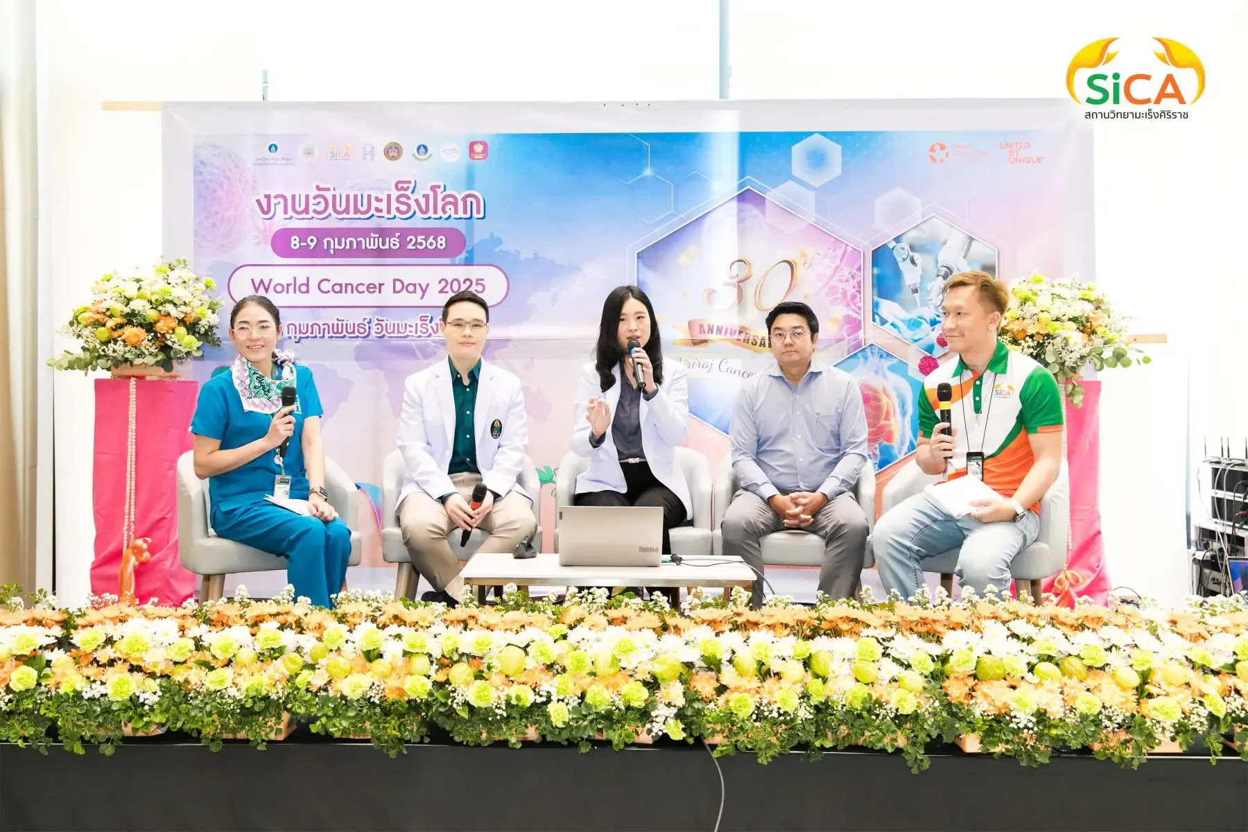 วันมะเร็งโลก ประจำปี 2568 จัดโดยสถานวิทยามะเร็งศิริราช คณะแพทยศาสตร์ศิริราชพยาบาล มหาวิทยาลัยมหิดล และ SIRIRAJ H SOLUTIONS ศูนย์สุขภาพเชิงป้องกันและบูรณาการสมดุลชีวิต และไอซีเอส ไลฟ์สไตล์ คอมเพล็กซ์ ระหว่างวันที่ 8-9 กุมภาพันธ์ 2568 โดยมี รศ. ดร.นพ.วิทูร ชินสว่างวัฒนกุล หัวหน้าสถานวิทยามะเร็งศิริราช (ขวามือ) เป็นผู้กล่าวรายงาน และมี ผศ. นพ.มนศักดิ์ ชูโชติรส รองผู้อำนวยการโรงพยาบาลศิริราช (ซ้ายมือ) เป็นประธานในพิธีเปิด ณ SIriraj H Solutions โดยภายในงานมีการเสวนาให้ความรู้เกี่ยวกับโรคมะเร็งโดยแพทย์ผู้เชี่ยวชาญ และบูธกิจกรรมต่างๆ