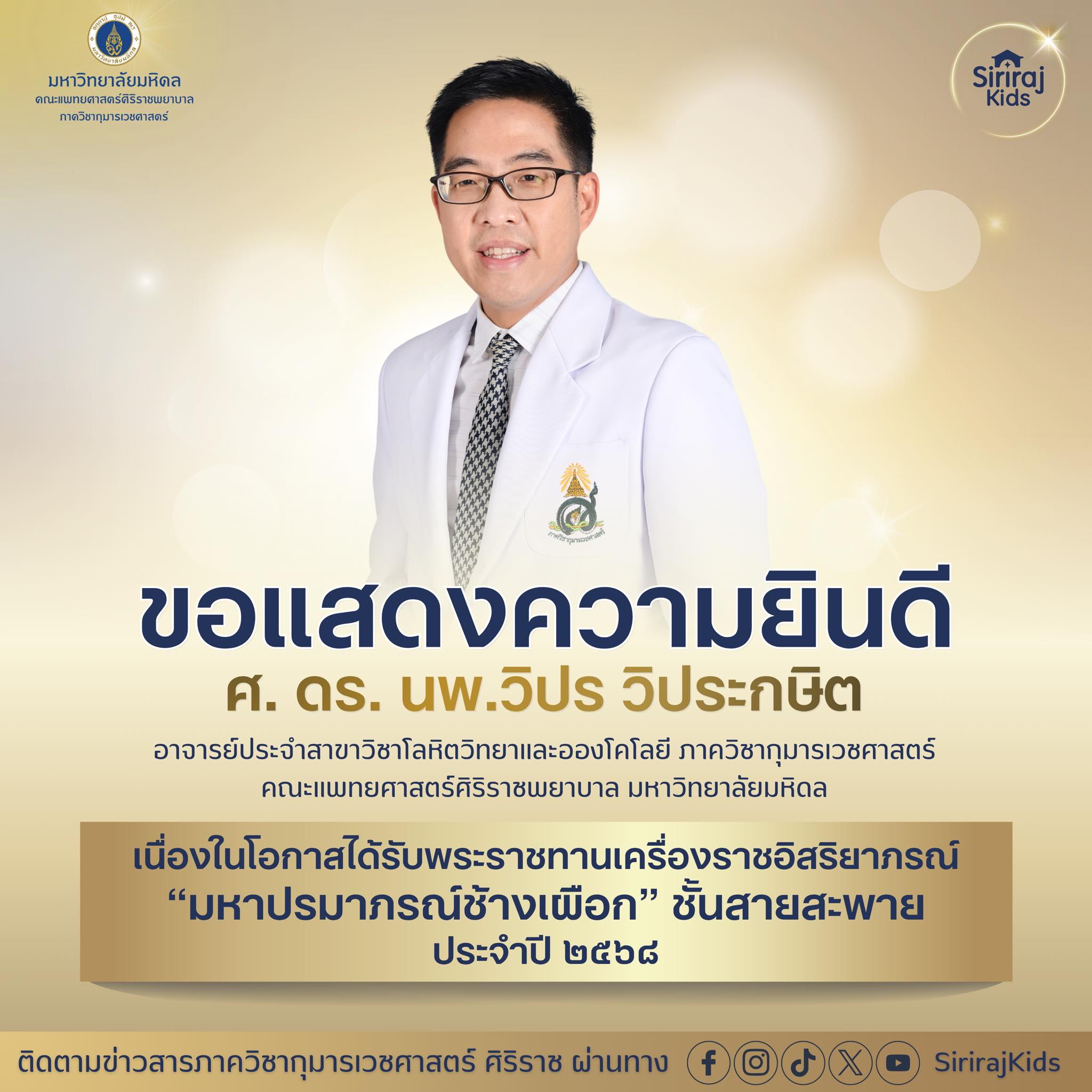 #ขอแสดงความยินดี#เครื่องราชอิสริยาภรณ์#SirirajKids#กุมารศิริราช#sirirajhospital