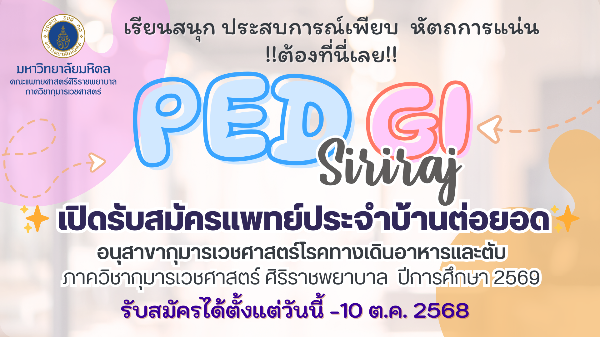 รับสมัครแพทย์ประจำบ้านต่อยอด