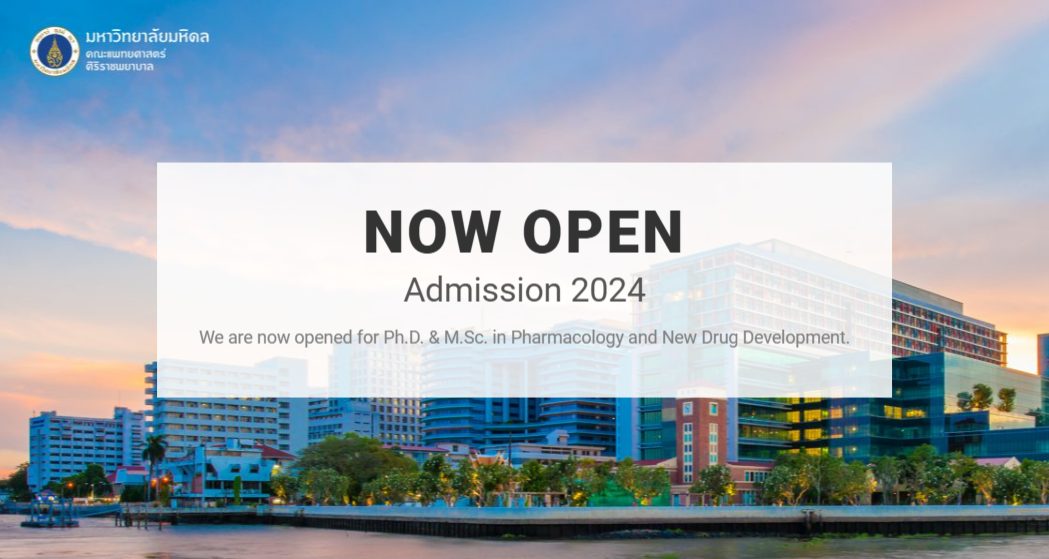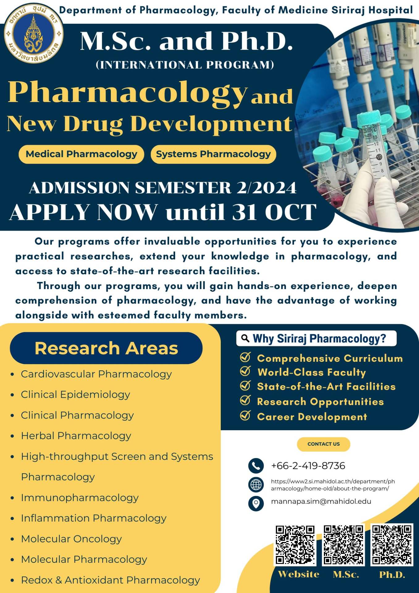 We are now opened for Ph.D. & M.Sc. in Pharmacology and New Drug Development.