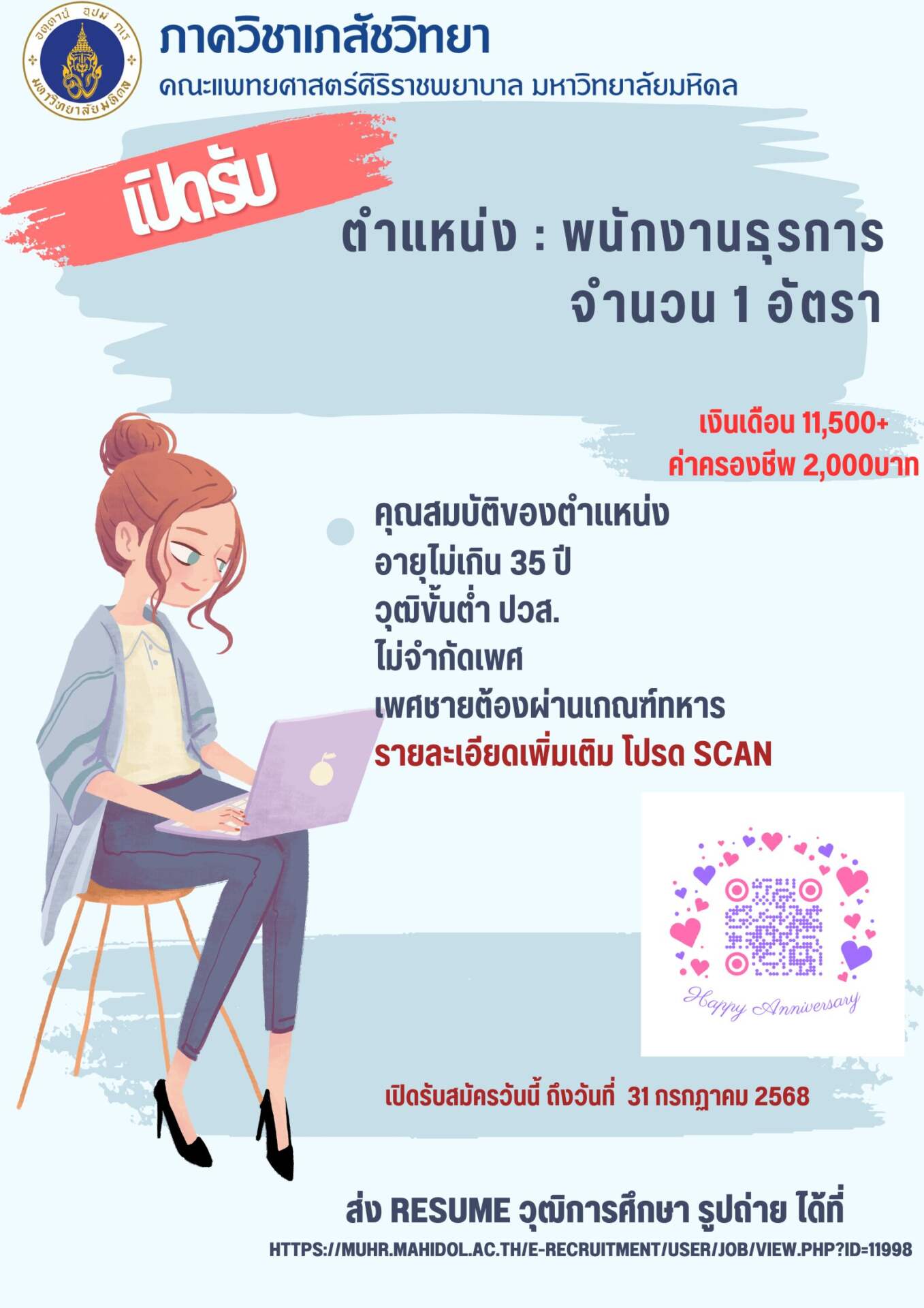 สนใจส่ง resume ภายในวันที่ 16 พ.ค.2568