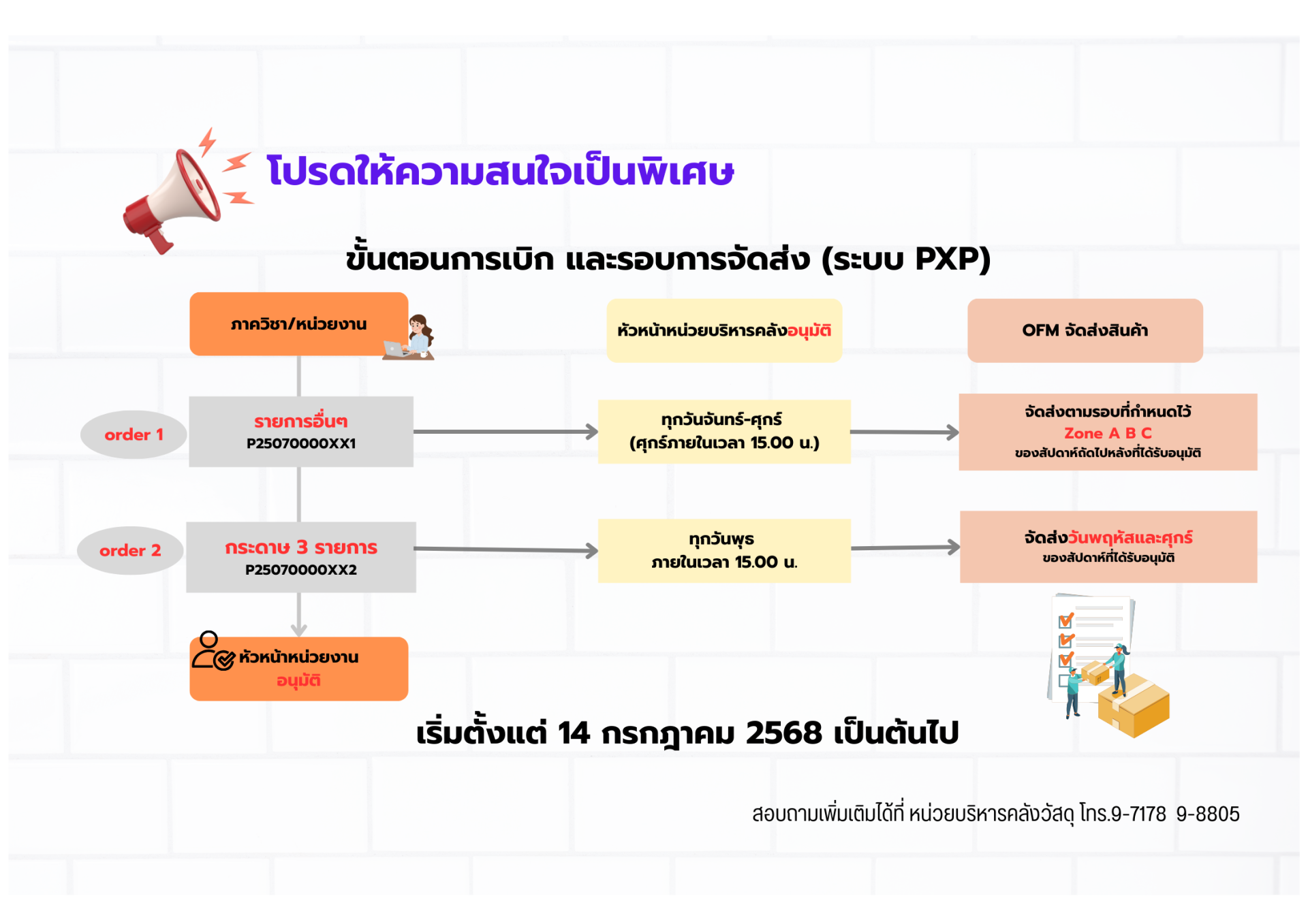 ขั้นตอนการเบิก และรอบการจัดส่ง (ระบบ PXP) ขั้นตอนการเบิกและรอบการจัดส่งสินค้า เมื่อทำการสั่งสินค้าจากระบบ PXP