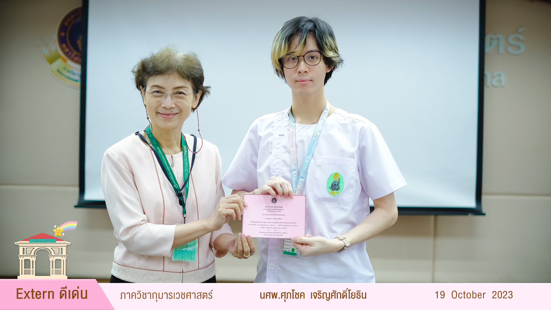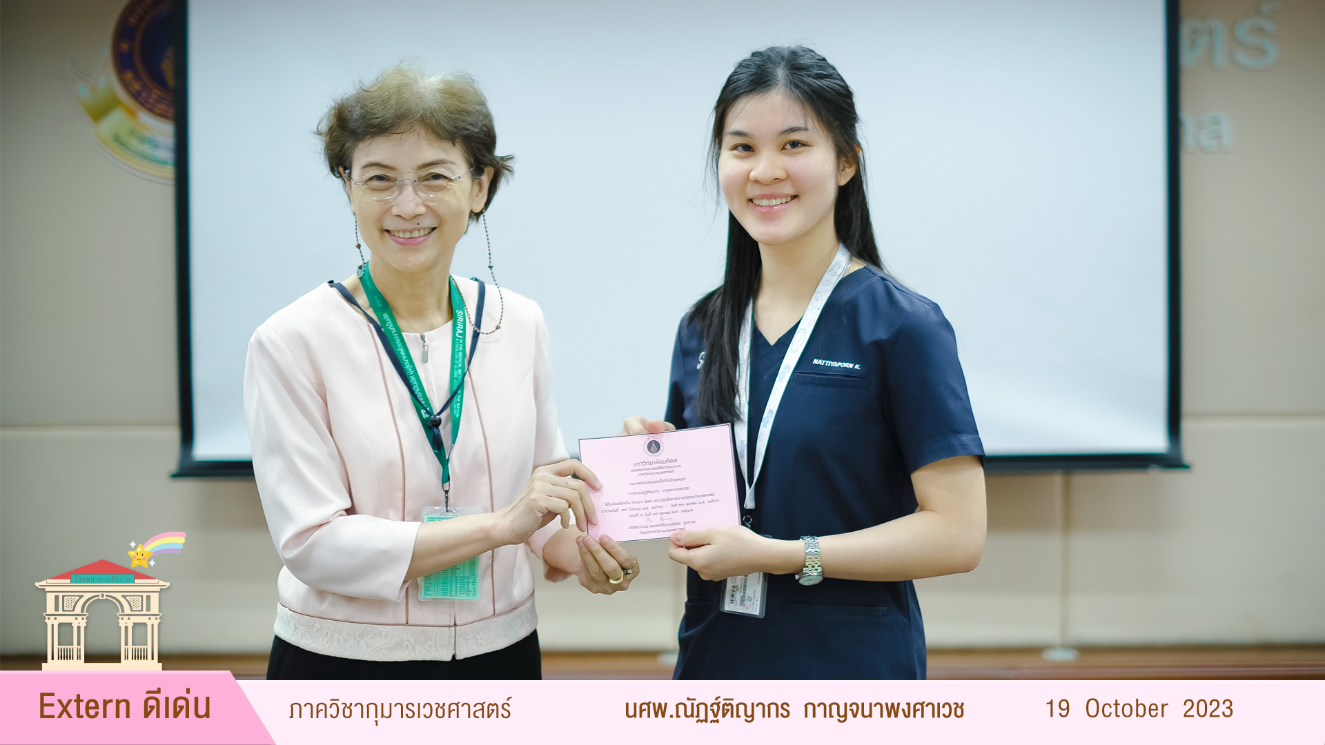 presented the Excellent Extern Awards to Miss Ajalaya Ungsamran and Miss Pimploy Ngarmsaard the externs who had outstanding performance during their practice at Department of Pediatrics from 12 May 2024- 8 June 2024.