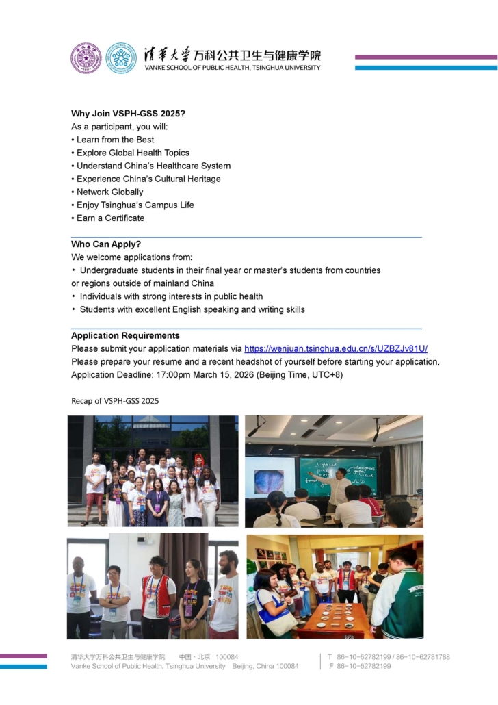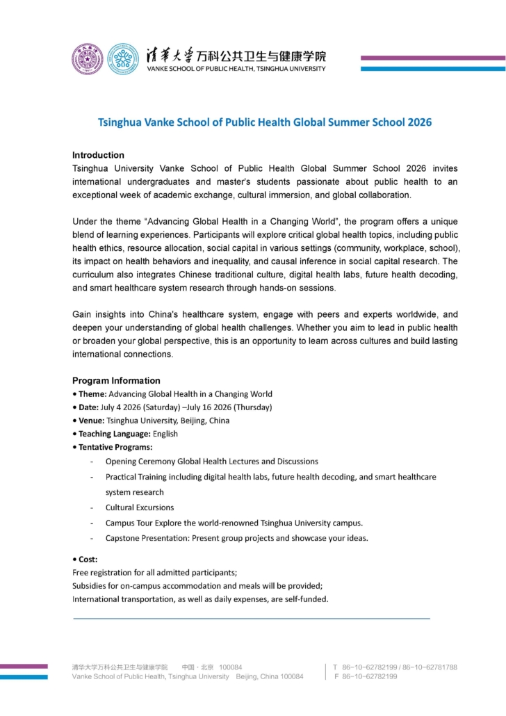 [Call For Application] Tsinghua Vanke School of Public Health Global Summer School 2026