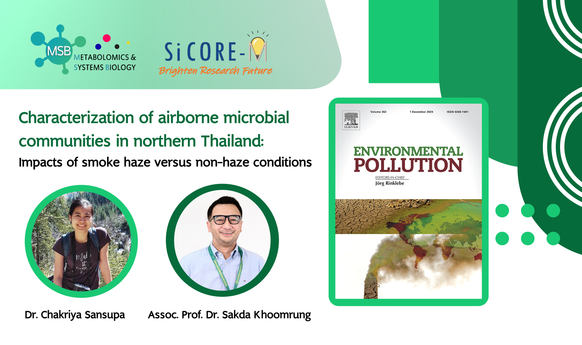 We extend our heartfelt congratulations to Dr. Chakriya Sansupa and Assoc. Prof. Dr. Sakda Khoomrung of the Siriraj Center of Research Excellence in Metabolomics and Systems Biology (SiCORE-MSB), Faculty of Medicine, Siriraj Hospital, Mahidol University, for their significant contribution to the field of environmental science and public health with their recent publication in the Journal of Environmental Pollution on November 10, 2024. (You can access the publication via this link: https://www.sciencedirect.com/science/article/pii/S0269749124020190?casa_token=UcN4CFtF8tsAAAAA:Zc1VGqibF4ozZcSdyYuScBVg1moEMYL4R0Ec40VIYVWKDhTil-xjuOTub3mydYzCZtd7gbM89nof )