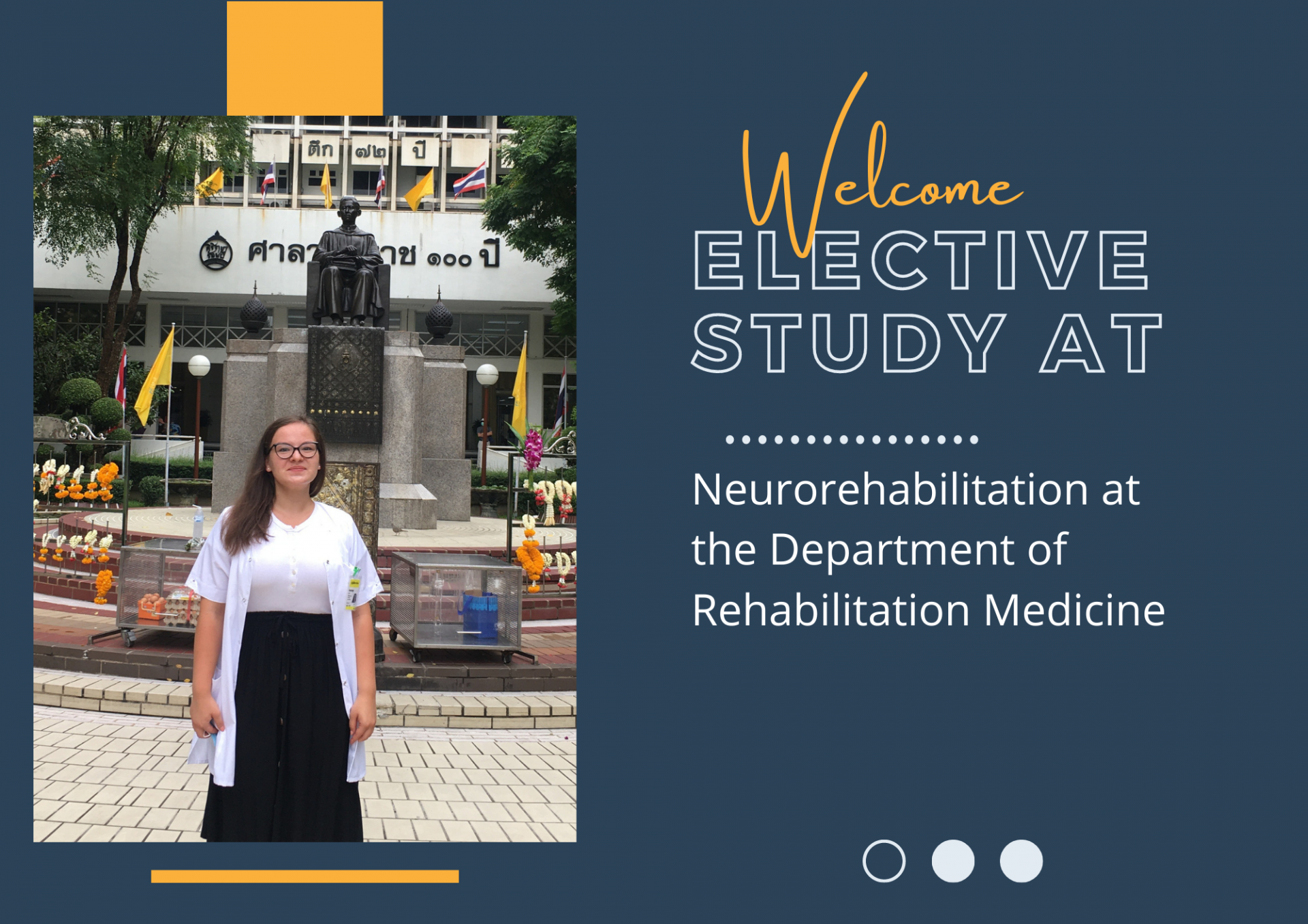 Welcome! Dr. Austeja Dapkute, a 3rd-year neurology resident from the Faculty of Medicine Vilnius University, Lithuania, to undertake an Elective Study in Neurorehabilitation at the Department of Rehabilitation Medicine, Faculty of Medicine, Siriraj Hospital, Mahidol University, between September 5th – 30th 2022.