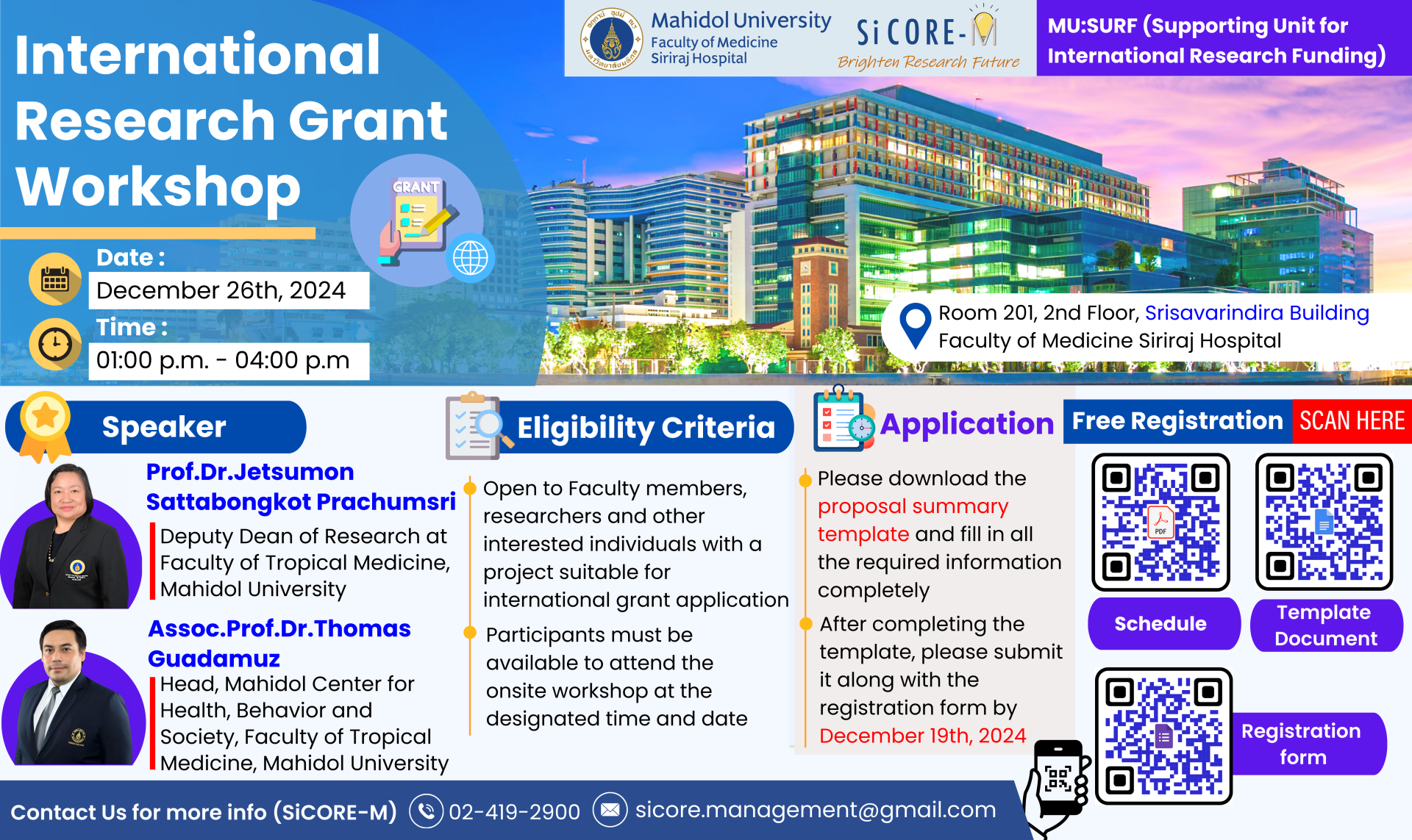 🏢 Room 201, 2nd Floor, Srisavarindira Building, Faculty of Medicine Siriraj Hospital