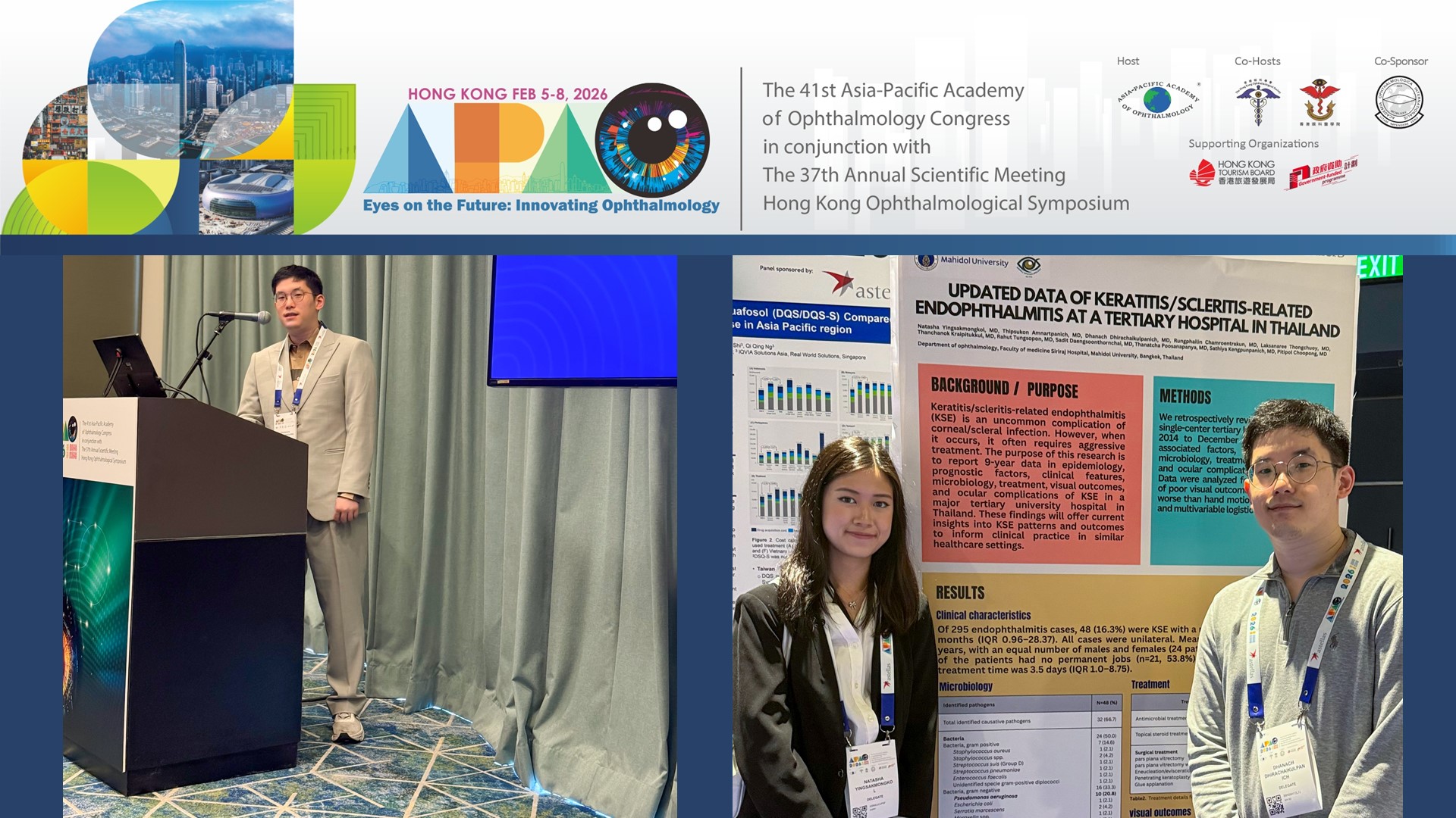 Lecturer Dhanach Dhirachaikulpanich, MD, PhD, Lecturer at the Siriraj Research Data Management Unit (Si-RDMU), Research Department, Faculty of Medicine Siriraj Hospital, Mahidol University, participated in The 41st Asia-Pacific Academy of Ophthalmology (APAO) 2026 Congress held in conjunction with The 37th Hong Kong Ophthalmological Symposium, from February 5th – 8th, 2026, in Hong Kong, People’s Republic of China.