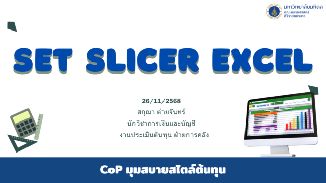 ความรู้ CoP : การ Set Slicer Excel Posted on 07/01/202608/01/2026 by Siriraj_KM Views : 29 CoP มุมสบายสไตล์ต้นทุน จัดกิจกรรมแลกเปลี่ยนเรียนรู้ (Community of Practice: CoP) ครั้งที่ 11 ประจำปี 2568 เมื่อวันที่ […]