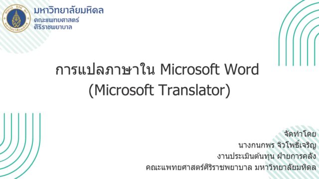 ความรู้ CoP : การแปลภาษาใน Microsoft Word Posted on 12/01/202615/01/2026 by Siriraj_KM Views : 39 CoP มุมสบายสไตล์ต้นทุน จัดกิจกรรมแลกเปลี่ยนเรียนรู้ (Community of Practice: CoP) ครั้งที่ 12 ประจำปี 2568 เมื่อวันที่ […]