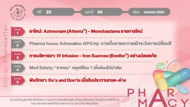 ศิริราชเภสัชสาร เดือนมกราคม 2569 Posted on 29/01/2026 by Siriraj_KM Views : 8 ศิริราชเภสัชสาร ปีที่ 25 ฉบับที่4