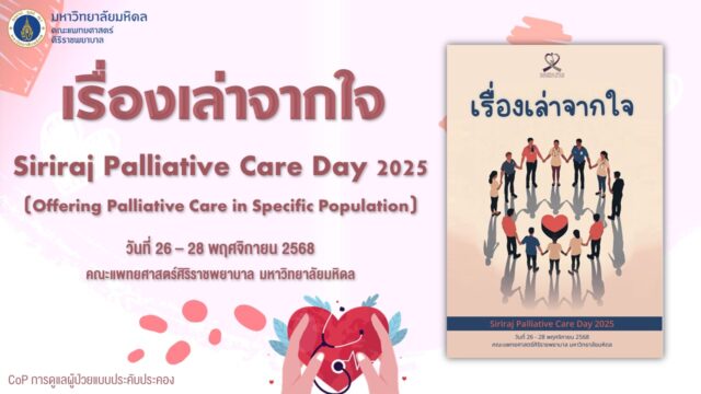 Understanding Bereavement: Helping Adults Cope with Grief and Loss Posted on 26/01/202628/01/2026 by Siriraj_KM Views : 20 การบรรยายเรื่อง Understanding Bereavement: Helping Adults Cope with Grief and Loss โดย Assoc. Prof. […]