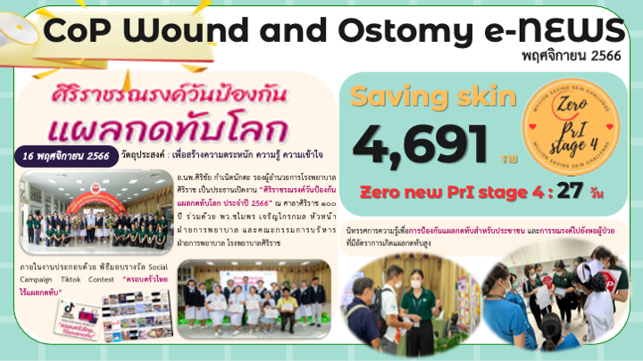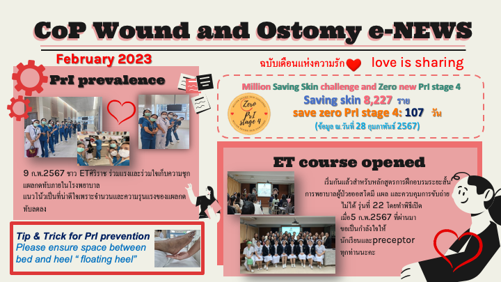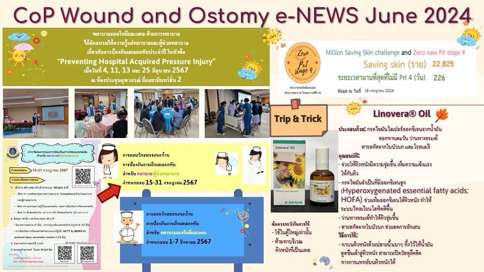 กลุ่ม CoP แผลและออสโตมี (wound and ostomy) ได้จัดทำ eNews เพื่อรวบรวมและเผยแพร่กิจกรรมและความรู้ที่ได้ดำเนินการ