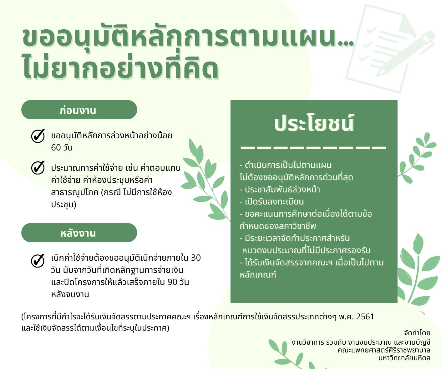 - ขออนุมัติหลักการล่วงหน้าอย่างน้อย 60 วัน