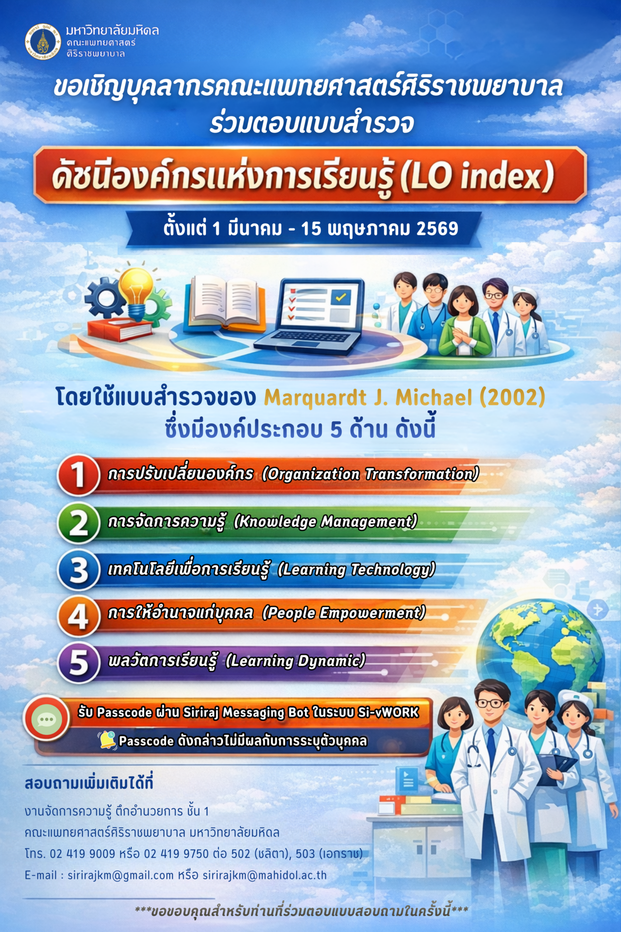 (เฉพาะบุคลากรในคณะแพทยศาสตร์ศิริราชพยาบาล มหาวิทยาลัยมหิดล)