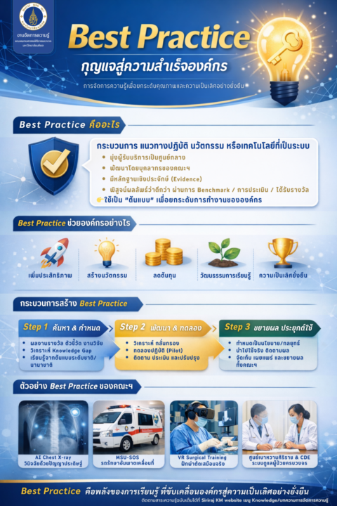 - สร้างนวัตกรรม เกิดจากการเรียนรู้และต่อยอด Best Practice สู่การพัฒนาสิ่งใหม่ ๆ ที่เป็นประโยชน์