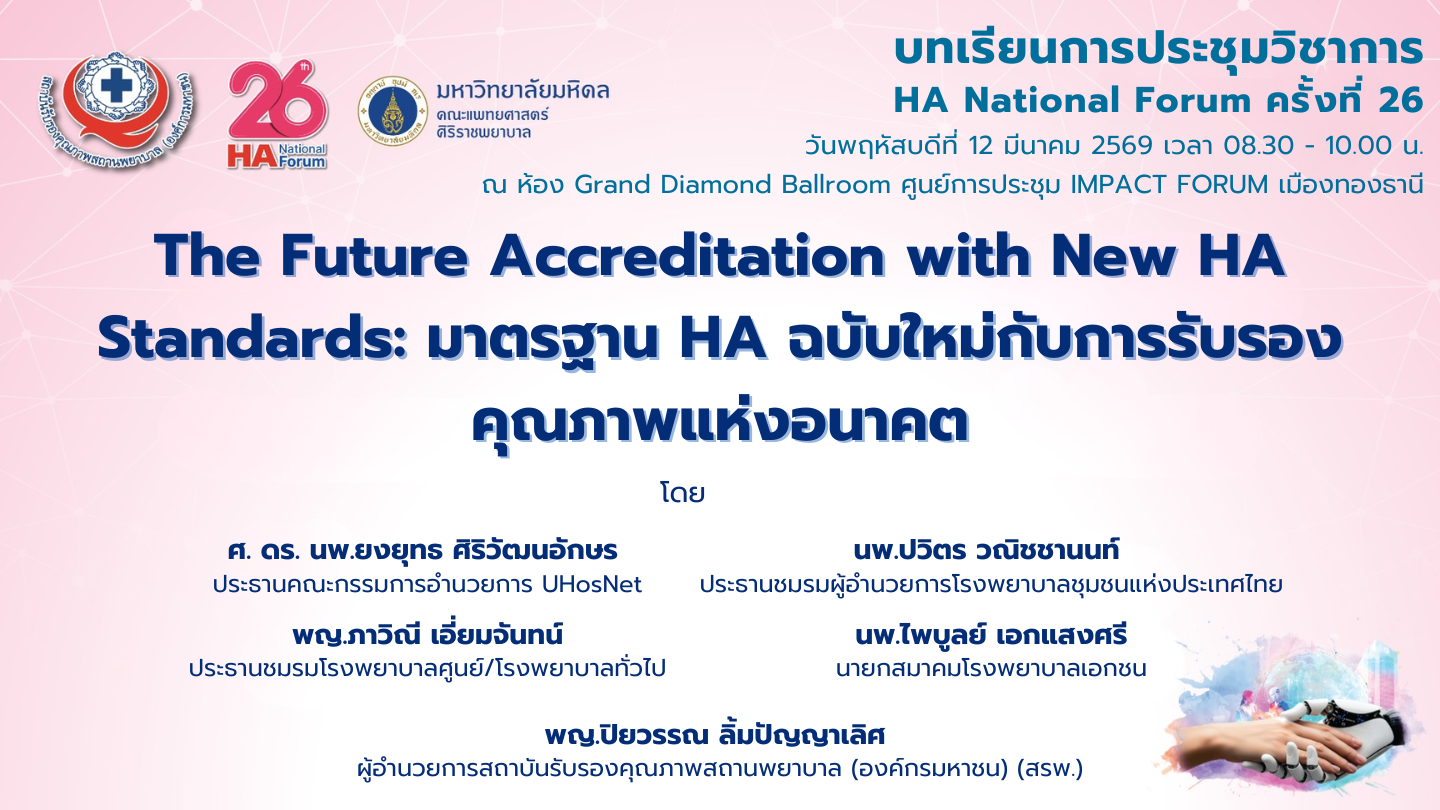 อ่านบทความฉบับเต็มได้ที่ >> The Future Accreditation with New HA Standards: มาตรฐาน HA ฉบับใหม่กับการรับรองคุณภาพแห่งอนาคต