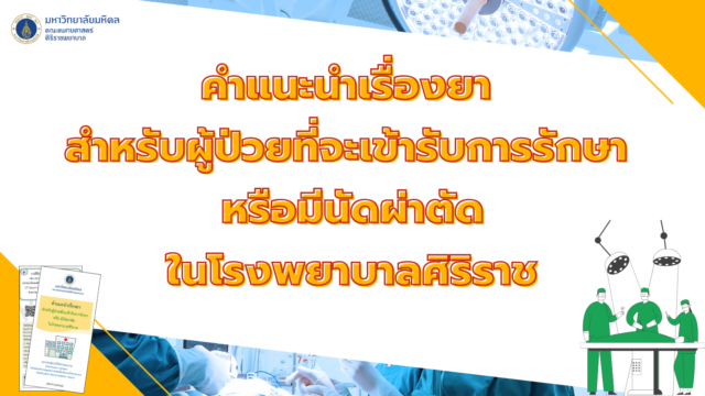 คำแนะนำเรื่องยา สำหรับผู้ป่วยที่จะเข้ารับการรักษา หรือมีนัดผ่าตัดในโรงพยาบาลศิริราช Posted on 07/10/202116/12/2025 by Admin KM Views : 2,124