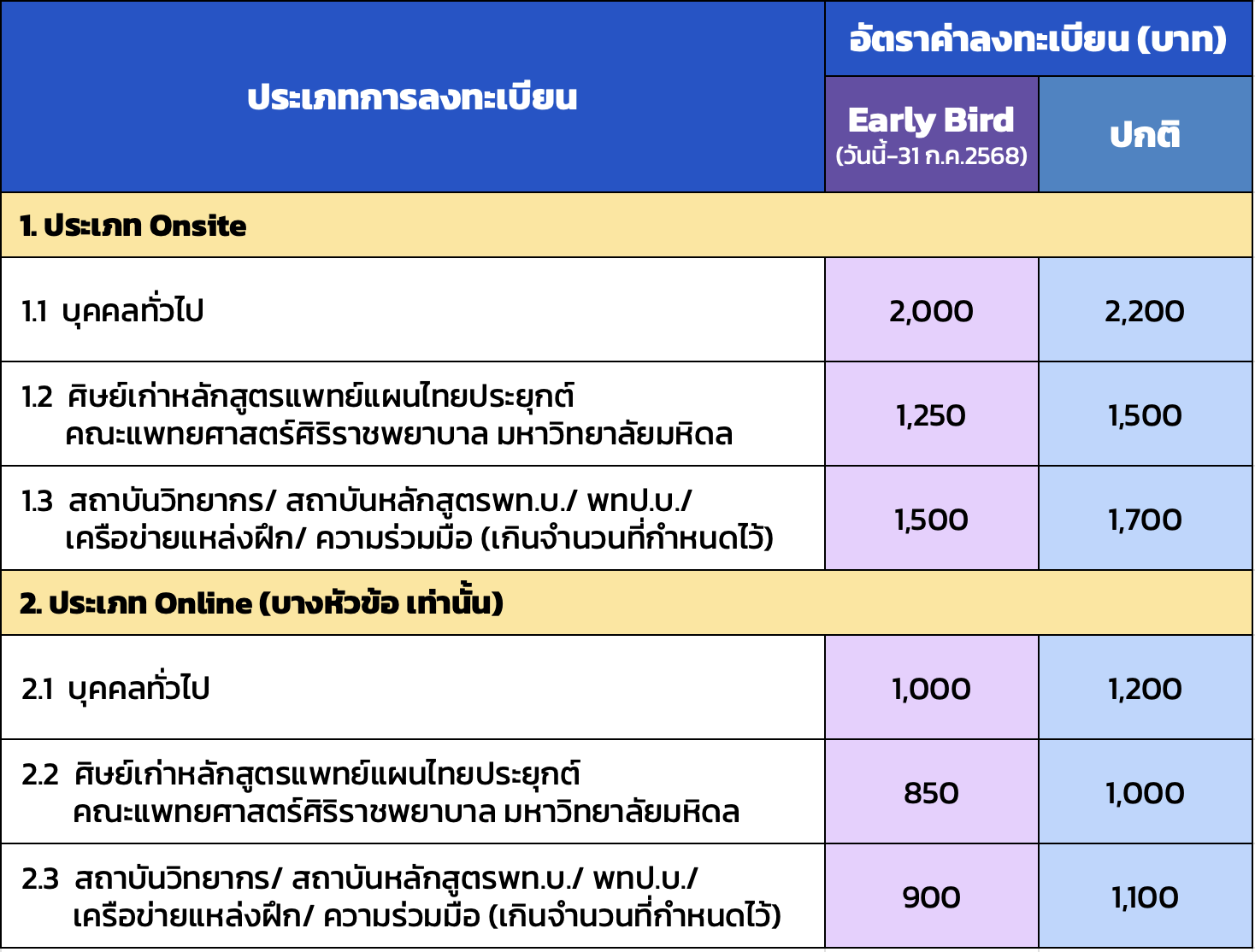 ลงทะเบียนเข้าร่วมประชุม (รูปแบบ On-site) ลงทะเบียนเข้าร่วมประชุม (รูปแบบ Online)