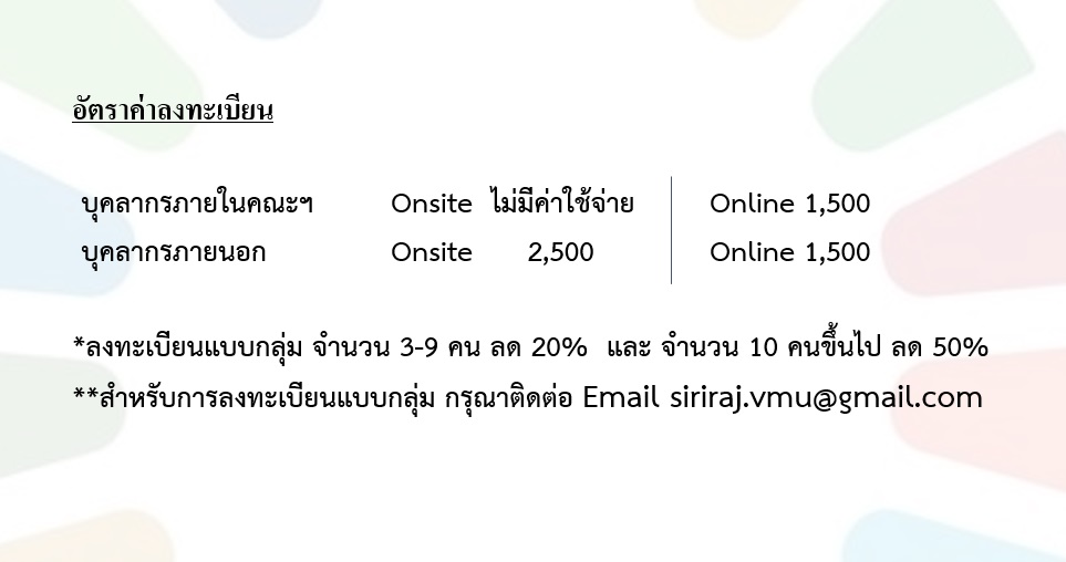 ลงทะเบียนสำหรับบุคลากรภายในคณะแพทยศาสตร์ศิริราชพยาบาล (Onsiteไม่มีค่าใช้จ่าย)