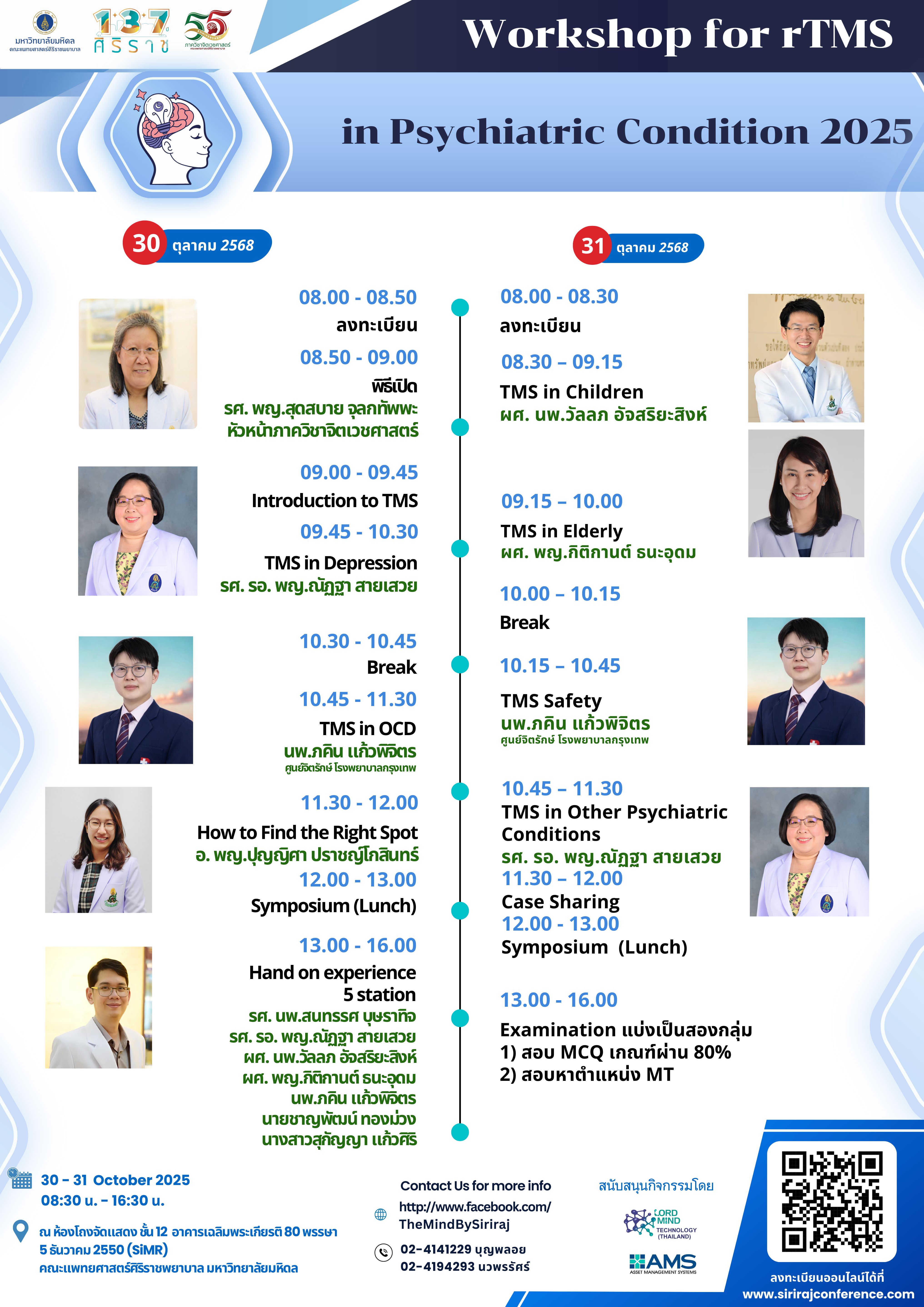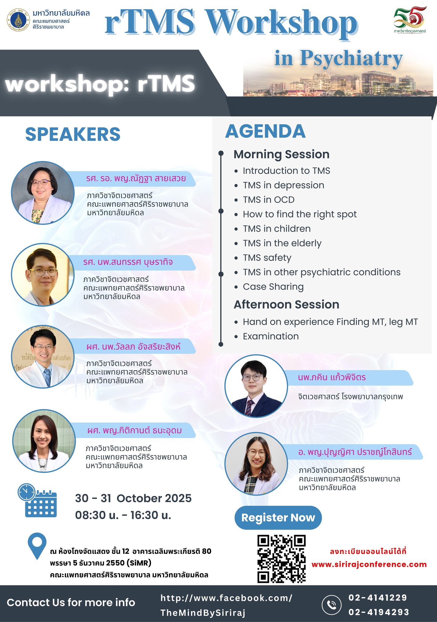 สอบถามเพิ่มเติม ภาควิชาจิตเวชศาสตร์ โทร. 02-4141229 / 02-4194293 (คุณนวพรรัศร์ คุณบุญพลอย) http://www.facebook.com/TheMindBySiriraj