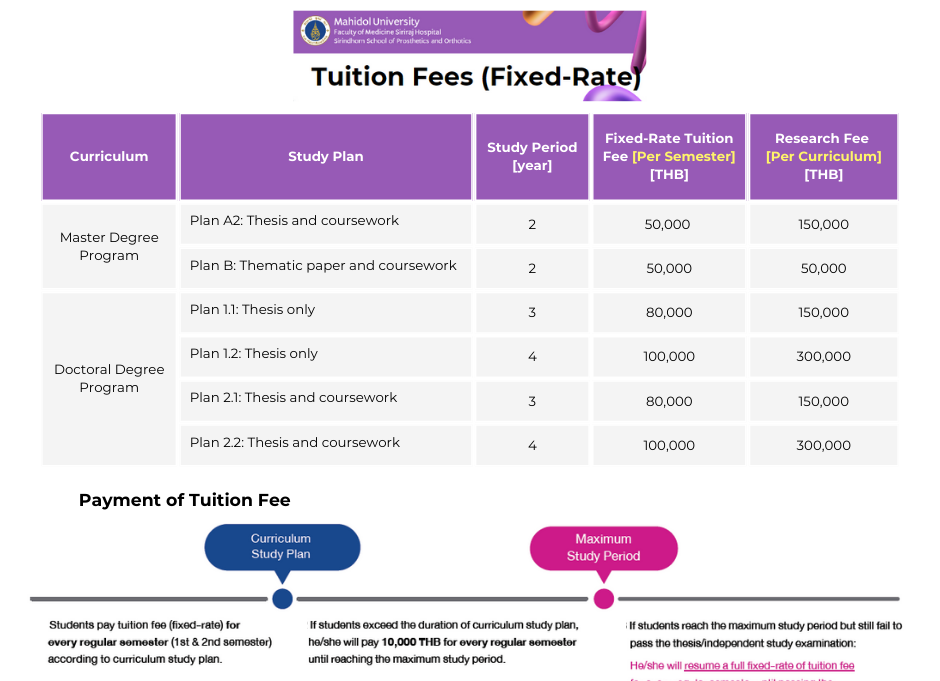 - Exemption from above criteria may be considered by the Program Administrative Committee and the Dean of the Faculty of Graduate Studies, Mahidol University.