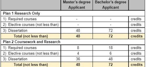 Plan 2.1 For students with Master’s Degree Applicant