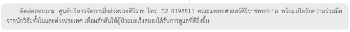 • ศูนย์จีโนมิกส์ศิริราช (คุณเอกพงศ์ รู้ทำนอง และ ศ. นพ.มานพ พิทักษ์ภากร)