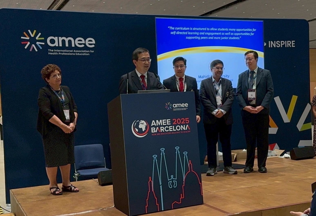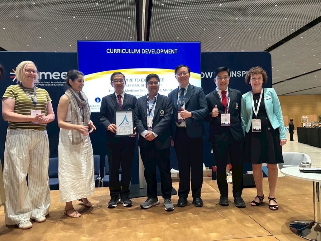 ขอเเสดงความยินดีกับคณะแพทยศาสตร์ศิริราชพยาบาล มหาวิทยาลัยมหิดล ในโอกาสได้รับ Certificate of Merit ใน Aspire to Excellence Award ทั้งหมด 4 สาขา ได้แก่ “Curriculum” “ Faculty Development” “Simulation” “ Student Engagement” โดยมี ศ. นพ.ธวัชชัย อัครวิพุธ รองคณบดีคนที่ 1 และผู้อำนวยการโรงเรียนแพทย์ศิริราช รศ. นพ.ตรีภพ เลิศบรรณพงษ์ รองคณบดีฝ่ายการศึกษาก่อนปริญญา รศ. นพ.รัฐพล ตวงทอง รองคณบดีฝ่ายกิจการนักศึกษา เเละ รศ.ดร.นพ.เชิดศักดิ์  ไอรมณีรัตน์ ผู้อำนวยการศูนย์ความเป็นเลิศด้านการศึกษาวิทยาศาสตร์สุขภาพ เข้ารับรางวัลในงานประชุม AMEE 2025 (Association for Medical Education in Europe) ที่จัดขึ้นระหว่างวันที่ 23–27 สิงหาคม 2025 ณ Centre de Convencions Internacional de Barcelona (CCIB), Barcelona, Spain