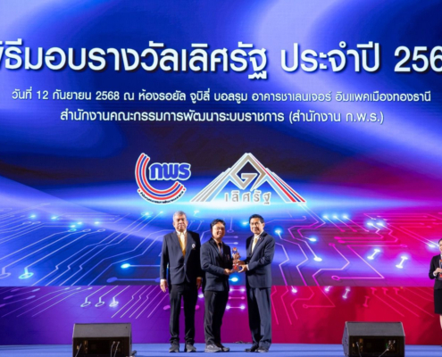 ​ โอกาสนี้ รศ. นพ.ตรงธรรม ทองดี หัวหน้าภาควิชารังสีวิทยา และรศ. นพ.พิทยา ด่านกุลชัย หัวหน้าสาขาวิชารังสีรักษา เข้าร่วมรับรางวัล โดยมี ศาสตราจารย์กิตติคุณ บวรศักดิ์ อุวรรณโณ กรรมการตรวจสอบและประเมินผลภาคราชการ เป็นประธานมอบรางวัล ในพิธีมอบรางวัลเลิศรัฐ ประจำปี 2568 ซึ่งจัดโดยสำนักงานคณะกรรมการพัฒนาระบบราชการ (ก.พ.ร.) เมื่อวันศุกร์ที่ 12 กันยายน 2568 เวลา 13.30 น. ณ ห้องรอยัล จูบิลี่ บอลรูม อาคารชาเลนเจอร์ อิมแพคเมืองทองธานี จังหวัดนนทบุรี