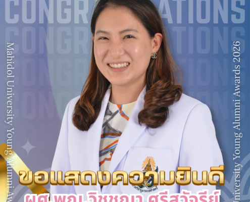 – ผศ. พญ.วิชชญา ศรีสุวัจรีย์ ภาควิชากุมารเวชศาสตร์ ได้รับรางวัลศิษย์เก่ารุ่นใหม่ดีเด่น Mahidol University Young Alumni Awards 2026