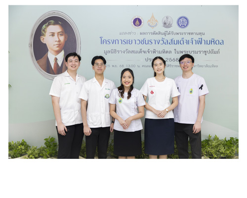 ข่าวประชาสัมพันธ์ล่าสุด กิจกรรม “ENT One Fine Day: We Grow Together 🌳🌱🌵”รายละเอียด 17/04/2026 Kor-V Herbal Baby Wipes : ทิชชูเปียกสมุนไพรไทย เพื่อป้องกันโรคมือเท้าปากในเด็กเล็กรายละเอียด 10/04/2026 ศิริราช ร่วมสรงน้ำพระพุทธเมตตาศิริราชคุณากร (องค์จำลอง) เนื่องในวันสงกรานต์รายละเอียด 09/04/2026 ทั้งหมด ข่าวประชาสัมพันธ์คณะฯ ข่าวประชาสัมพันธ์โรงพยาบาลศิริราช รวมข่าวปลอมศิริราช รางวัลและผลงาน กิจกรรมเนื่องในวันคล้ายวันพระบรมราชสมภพ พระบาทสมเด็จพระบรมชนกาธิเบศร มหาภูมิพลอดุลยเดชมหาราช บรมนาถบพิตร วันชาติ และวันพ่อแห่งชาติ 5 ธันวาคม 2568รายละเอียด 04/12/2025 การพัฒนาหุ่นจำลองเพื่อฝึกทักษะการฉีดยาชา Retrobulbarรายละเอียด 04/12/2025 พิธีทำบุญตักบาตรและพิธีบำเพ็ญกุศล เพื่ออุทิศถวายพระราชกุศล แด่สมเด็จพระนางเจ้าสิริกิติ์ พระบรมราชินีนาถ พระบรมราชชนนีพันปีหลวง ในวาระครบ ๕๐วัน (ปัญญาสมวาร) แห่งการสวรรคตรายละเอียด 04/12/2025 ประกาศความสำเร็จ โครงการแสงนำใจไทยทั้งชาติ เดิน วิ่ง ปั่น ป้องกันอัมพาต ครั้งที่ 11รายละเอียด 02/12/2025 ผลการตัดสินรางวัลสมเด็จเจ้าฟ้ามหิดล ประจำปี 2568รายละเอียด 27/11/2025 สมเด็จพระกนิษฐาธิราชเจ้า กรมสมเด็จพระเทพรัตนราชสุดา ฯ สยามบรมราชกุมารี เสด็จพระราชดำเนินไปในการประชุมสามัญคณะกรรมการศิริราชมูลนิธิรายละเอียด 26/11/2025 ศิริราชแสดงศักยภาพผลงานด้านคุณภาพและนวัตกรรม คว้ารางวัลในงาน Mahidol Quality Fair 2025รายละเอียด 26/11/2025 กิจกรรม Chat & Share “F2F – Fabric to Function: Smart Textiles Enhancing Our Daily Practice”รายละเอียด 26/11/2025 โครงการพัฒนาระบบการเรียกเก็บค่ารักษาพยาบาล โรงพยาบาลศิริราช (ClaimOra) คณะแพทยศาสตร์ศิริราชพยาบาลรายละเอียด 26/11/2025 Placental Accreta Spectrum (PAS)รายละเอียด 26/11/2025 แถลงข่าว ผลการตัดสินผู้ได้รับพระราชทานทุนโครงการเยาวชนรางวัลสมเด็จเจ้าฟ้ามหิดล ประจำปี ๒๕๖๘รายละเอียด 25/11/2025 ต้อนรับคณะศึกษาดูงานโครงการหลักสูตร “CHI Fellowship in Healthcare Leadership and Innovation Program 2025”รายละเอียด 21/11/2025 ‹ 1 … 4 5 6 7 8 … 35 ›
