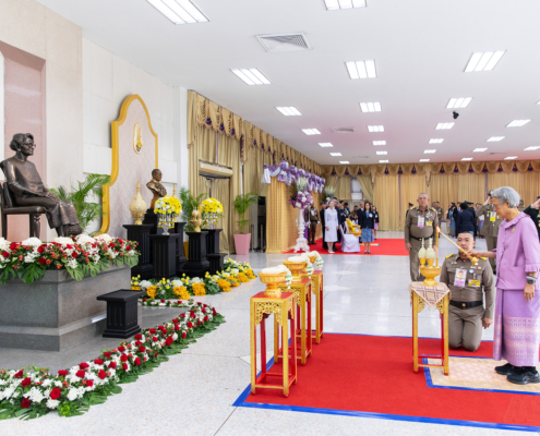 ต่อมาได้เสด็จ ฯ ไปยังพระราชานุสาวรีย์สมเด็จพระมหิตลาธิเบศร อดุลยเดชวิกรม พระบรมราชชนก ทรงวางพวงมาลัย ทรงจุดธูปเทียนเครื่องทองน้อยถวายราชสักการะ ทรงคม แล้วเสด็จ ฯ ไปยังศาลาศิริราช ๑๐๐ ปี ทรงวางพวงมาลัยและทรงจุดธูปเทียนเครื่องทองน้อยถวายราชสักการะพระราชานุสาวรีย์พระรูปสมเด็จพระศรีนครินทราบรมราชชนนี พระบรมรูปพระบาทสมเด็จพระปรเมนทรมหาอานันทมหิดล พระอัฐมรามาธิบดินทร และพระบรมรูปพระบาทสมเด็จพระบรมชนกาธิเบศร มหาภูมิพลอดุลยเดชมหาราช บรมนาถบพิตร ทรงคม จากนั้นเสด็จ ฯ ไปยังบริเวณฉายพระฉายาลักษณ์ และทรงลงพระนามาภิไธยในสมุดที่ระลึก ก่อนเสด็จ ฯ ไปยังห้องประชุมสิรินธร อาคารเฉลิมพระเกียรติ ชั้น G โรงพยาบาลศิริราช เพื่อประชุมคณะกรรมการศิริราชมูลนิธิ ครั้งที่ 175 (2/2568)